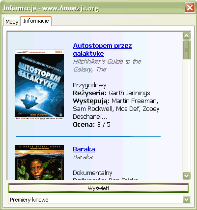 |  | | Informacje - bardzo rozbudowana pogoda i różnego rodzaju informacje z kraju, świata, sportu, polityki, wyniki lotto, program TV, kina, horoskopy i wiele więcej. Prawdziwy kombajn informacyjny! | | Pobierz»» Komentarze»» |